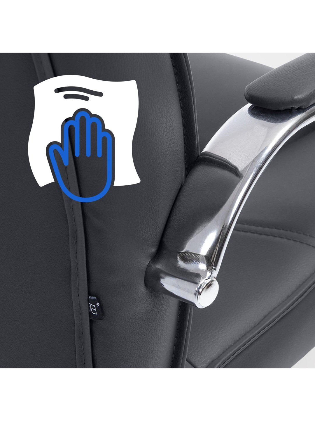 Kvalitné sedáky na stoličky sú opatrené ľahko udržiavateľnými prešívanými poťahmi z umelej kože. Chrániče podlahy na rámoch stoličky chránia citlivé povrchy.
